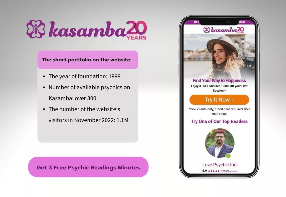 Kasamba has been around for decades and, thus, has many reviews that help you decide on choosing this website. Besides, a special offer for new members, free daily horoscopes and articles, as well as a decent number of psychics, were on our checklist to choose this reading source. A protection system of banking information was also a reason to recommend Kasamba.