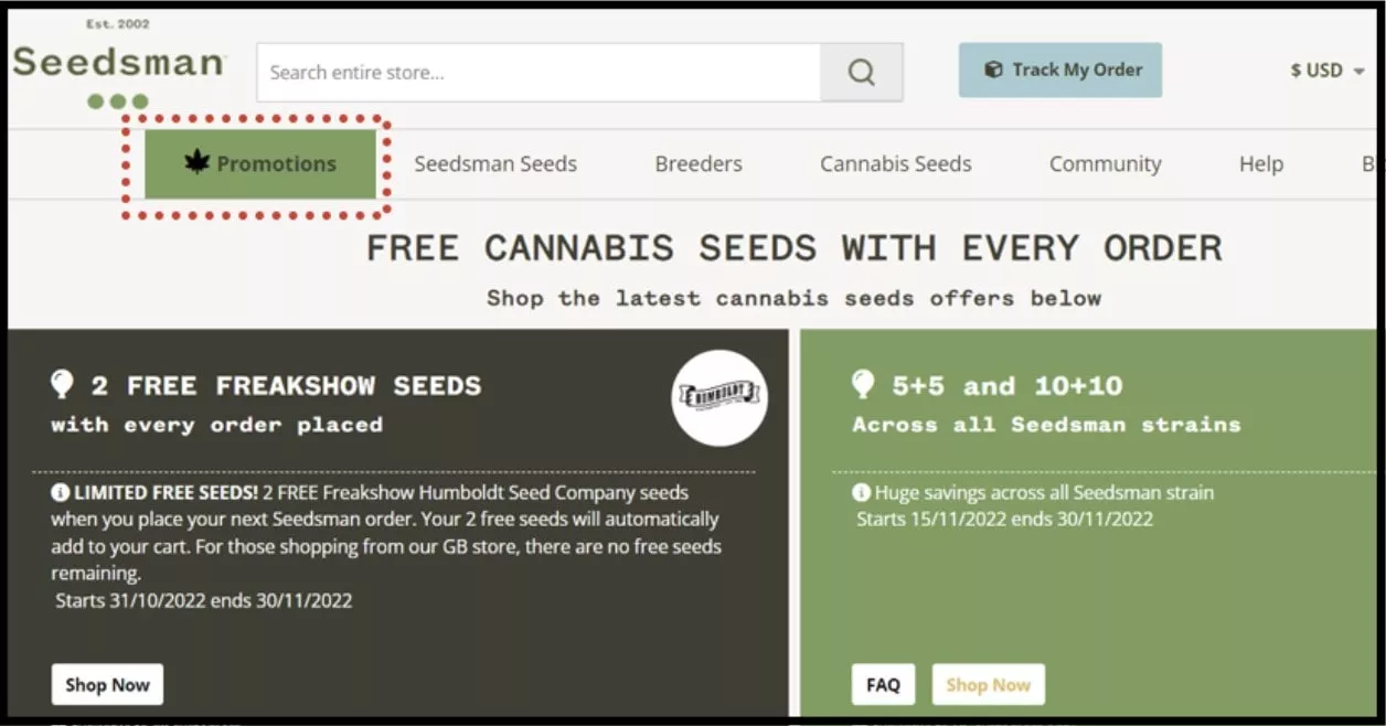 We give bonus points to online seed banks that include free seeds with the majority of purchases or offer frequent discounts and specials. We are particularly fond of cannabis seed banks that provide customers the opportunity to choose the free cannabis seeds they want to get.