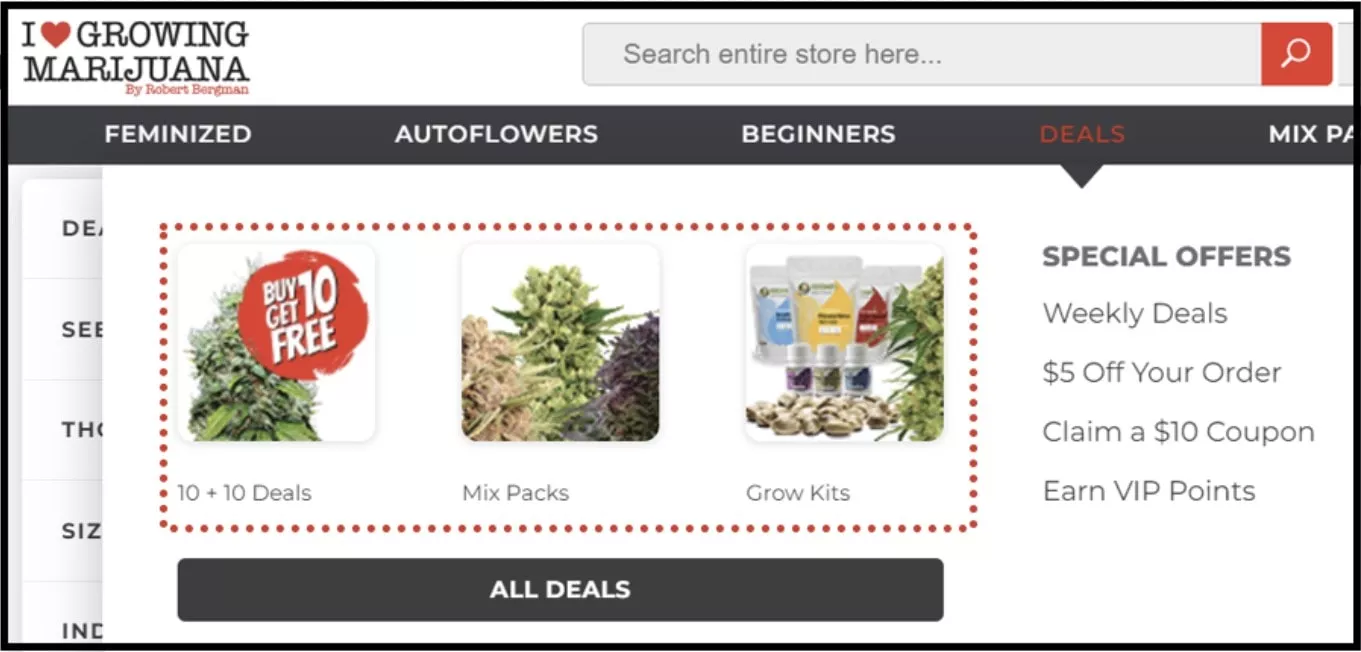 As you know, ILGM is famous for its Buy 10 Get 10 Free deals. Currently, these include Tropicana Cookies, White Widow, Super Silver Haze, and a few others.