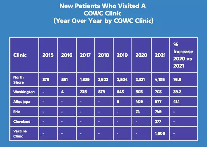 Of course, with 2020 came extreme change, and Central Outreach responded by expanding and facing these new challenges. This started with their Aliquippa Satellite office, which opened in December 2019. This office now sees 15% of all new patients. Additionally, Central Outreach has opened another new location to expand their reach, this time in Erie, PA.