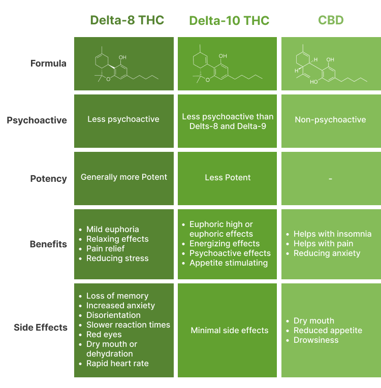 Delta-8 and Delta-10 have many key differences between them.