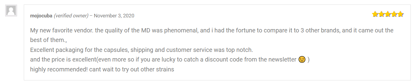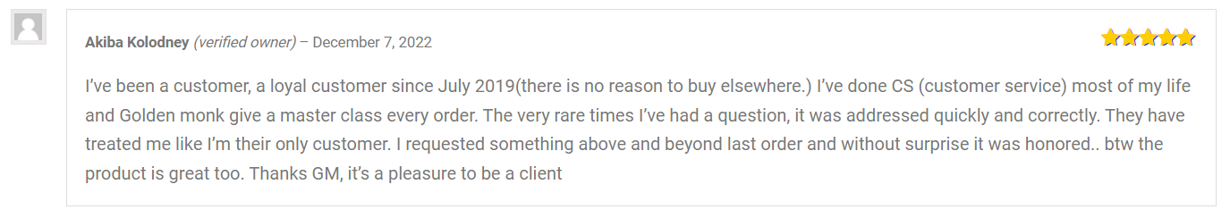 Mojocuba claims that the product’s quality at Golden Monk is outstanding, as are the packaging and the customer service. They also praised the website for its fair pricing.