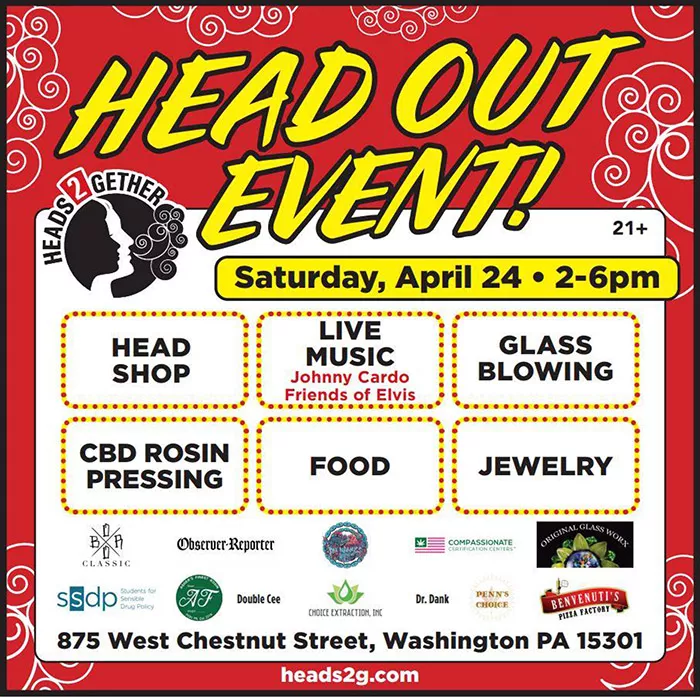 Heads2Gether the “high standard” in Washington, PA is hosting their first ever Head Out Event on Sat., April 24 from 2-6 p.m. at their store front located at 875 West Chestnut St.