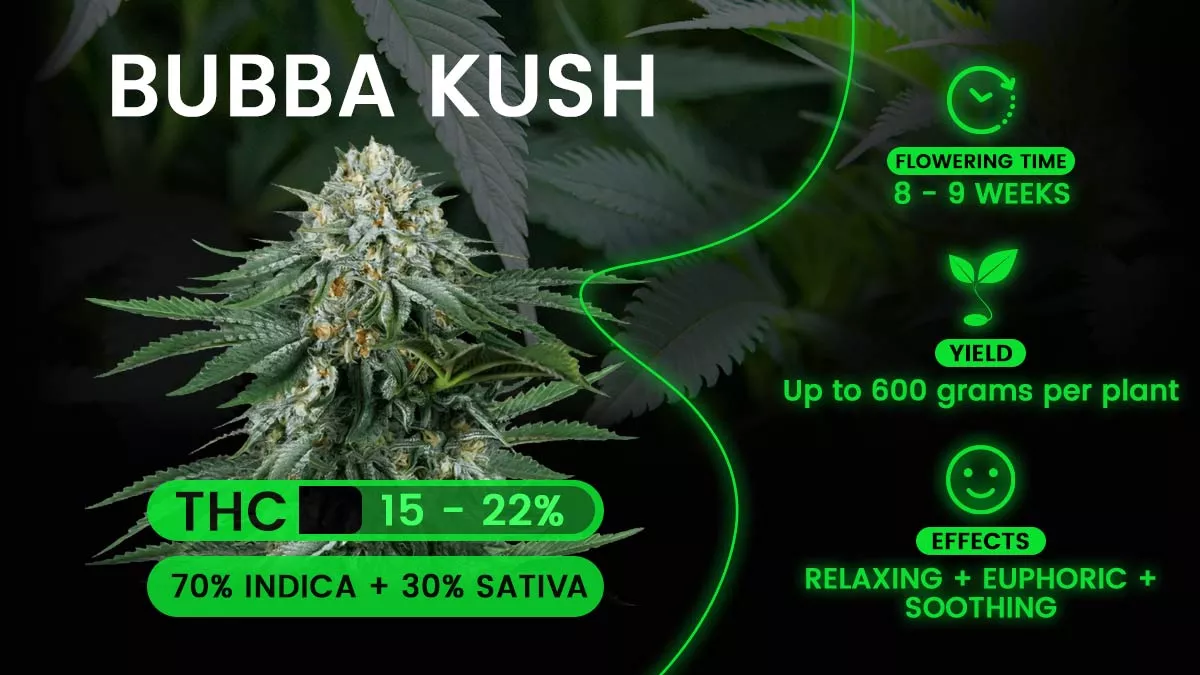 With THC levels ranging from 15% to 22%, Bubba Kush delivers a powerful, relaxing high. Users often report a profound sense of euphoria and a deep, soothing body high, making it ideal for evening use or unwinding after a long day.