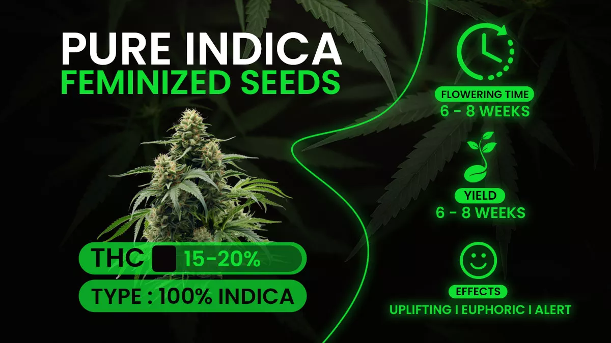 One of the strongest indica plants , Pure Indica, is the go-to choice for ultimate mental and full-body relaxation. Users claim that every muscle feels soft within minutes of taking it, leaving you completely chilled out.