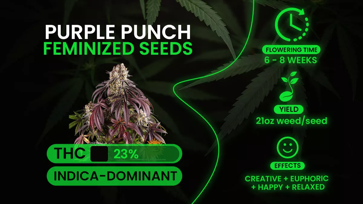 On top of this, this strain is known to potentially enhance creativity, helping many artists, musicians, and writers move beyond any creative blocks. Just a puff of this bud, and you can chill out while basking in Purple Punch’s delightful blueberry and fruity aroma with subtle hints of exotic spices.