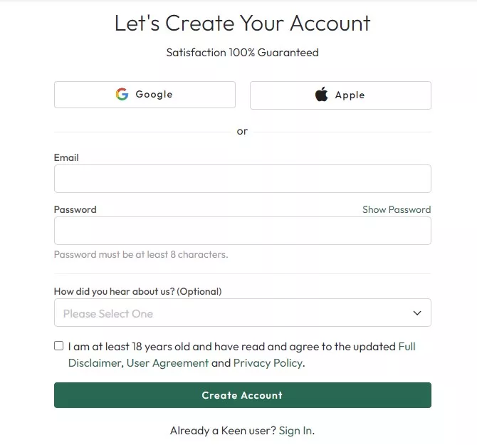 This Keen psychics review wouldn’t be complete without the process of signing up on the platform. Here’s how to go about it: