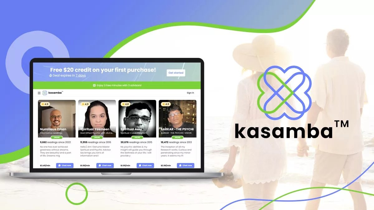 Kasamba attracts new users with its generous introductory offers, including 3 free minutes and $20 free on the first reading. Known for its precise love readings, Kasamba addresses a wide range of romantic queries from dating to divorce.