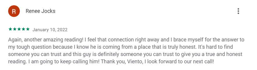 Renee Jocks loved talking with Keen psychics like Viento. Viento provides honest readings that answered Renee’s “tough” questions. In this Keen review, Renee said he’s looking forward to calling Viento again.