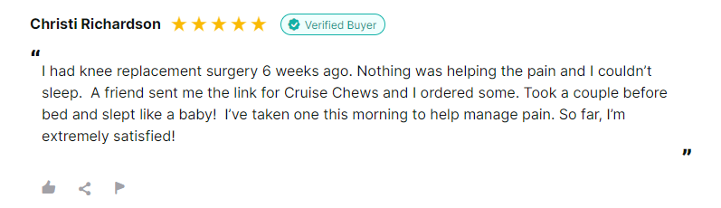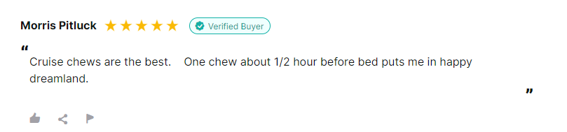 Another verified customer who posted Cruise Chews reviews, Morris Pitluck, gave these gummies a 5.0 out of 5.0 star rating in his Tommy Chong CBD review and noted that they’re perfect for people with sleeping issues.