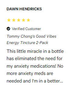 Dawn Hendricks from Ashtabula is a verified buyer who posted a Tommy Chong Good Vibes CBD review. He wrote in his Tommy Chong CBD review that the oil is a “miracle in a bottle,” saying that it completely eradicated their anxiety issues.